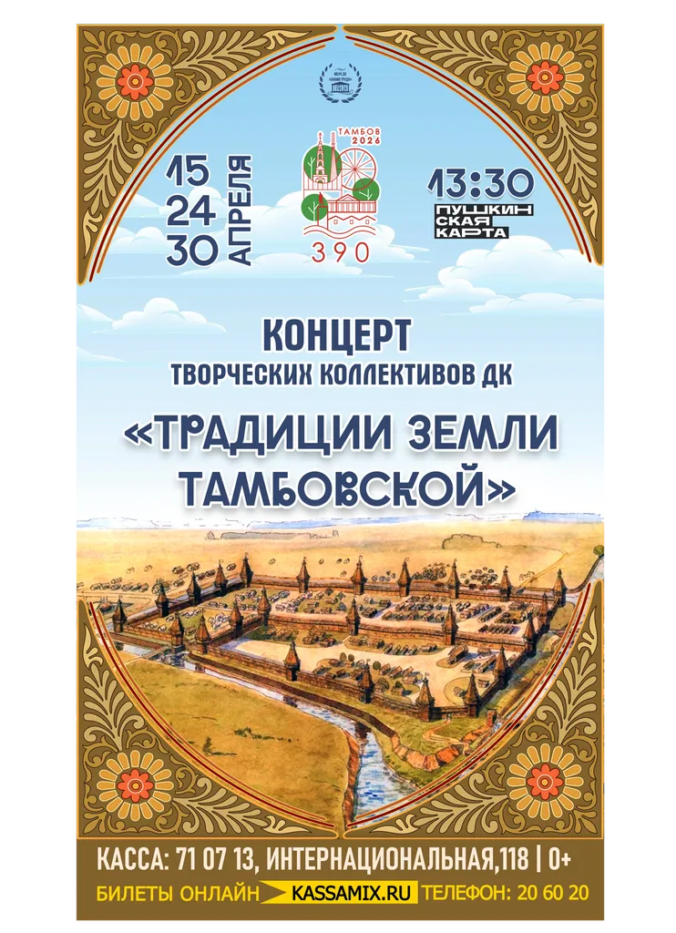 Четыре столетия назад, 27 апреля, на плодородных берегах Цны встал град Тамбов. Здесь, где переплетались судьбы разных народов — мордвы и мокши, татар и сарматов, — рождалась уникальная культура тамбовского края.