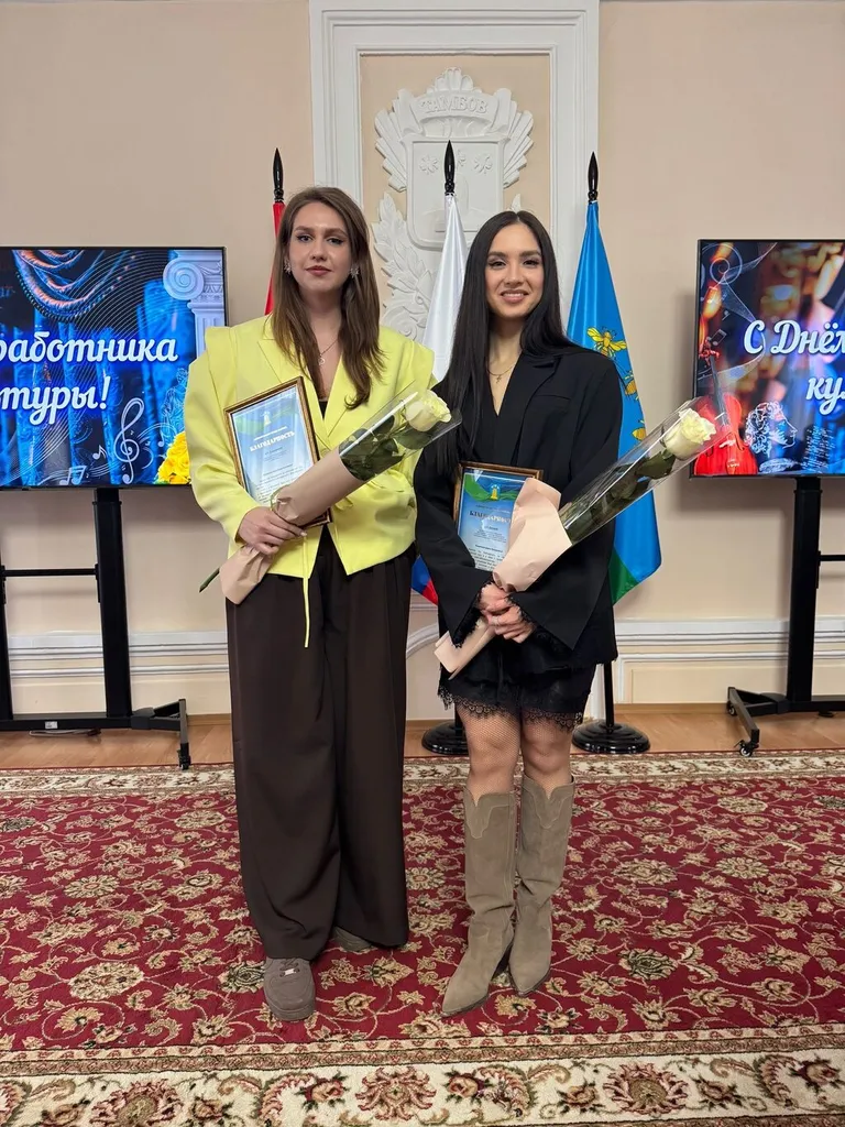 Анастасия Романовна Позднякова, методист ДК, и Дарья Валерьевна Друцкая, руководитель образцового фольклорного ансамбля «Праздник», получили Благодарность администрации города Тамбова.