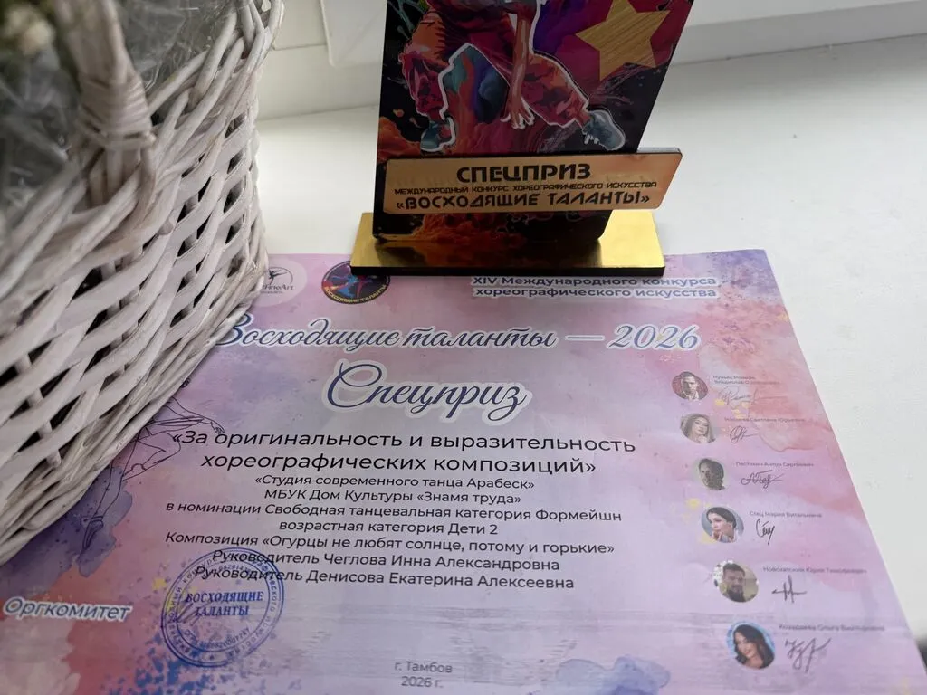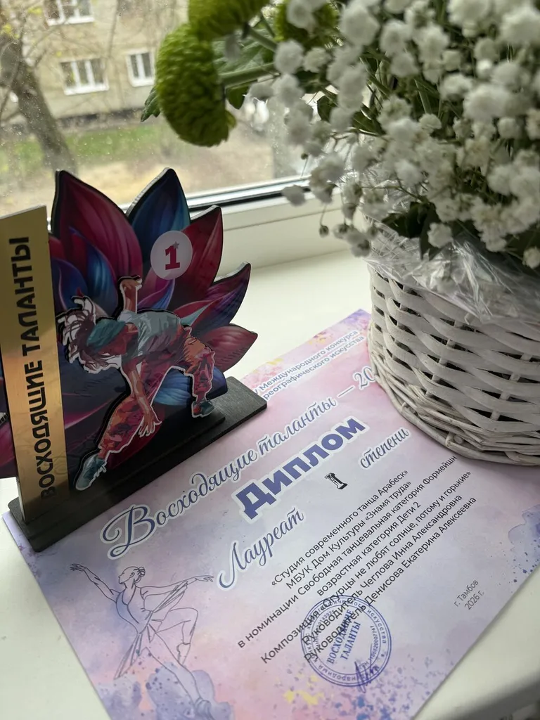 - Танец «Несломленная» (соло Горбачева Арина) Диплом лауреата 1 степени и специальный приз «За лучшую балетмейстерскую работу».
