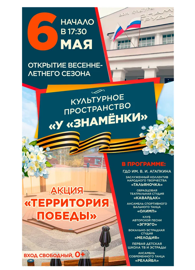 ОТКРЫТИЕ ВЕСЕННЕ-ЛЕТНЕГО СЕЗОНА КУЛЬТУРНОГО ПРОСТРАНСТВА «У «ЗНАМЁНКИ»: АКЦИЯ «ТЕРРИТОРИЯ ПОБЕДЫ», 0+